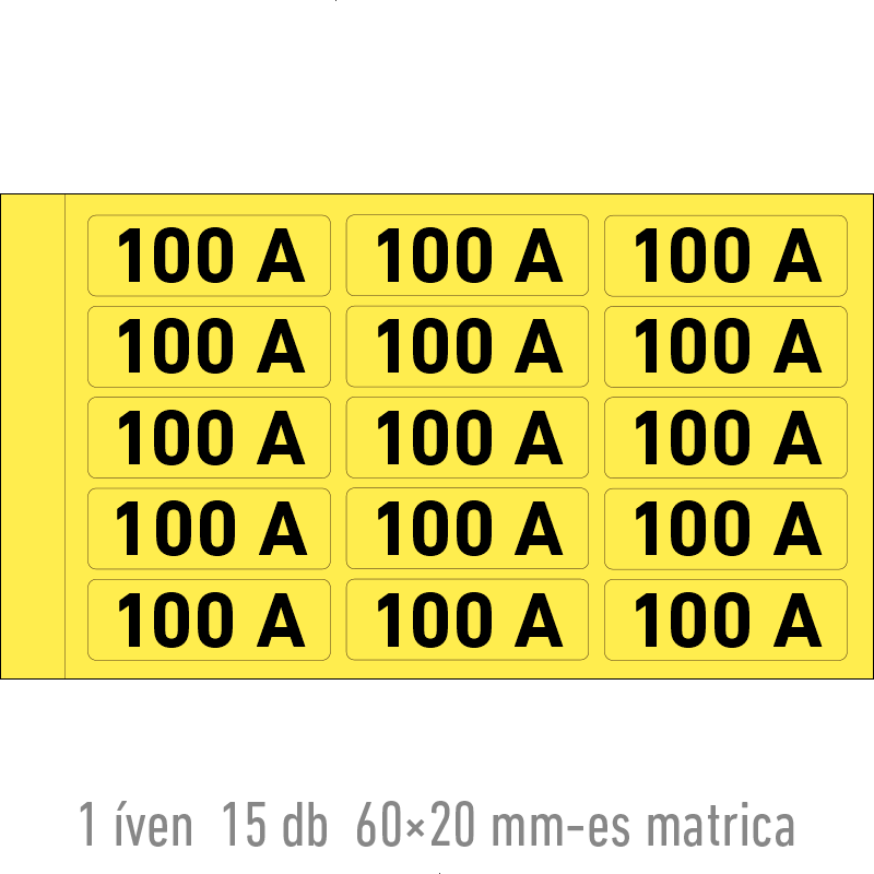 | 100 A matrica 60x20 mm ERV115001ONV00600020 | vinil öntapadó | 60 mm | 20 mm | 0.2 mm | ív | 275 Ft | 349 Ft |