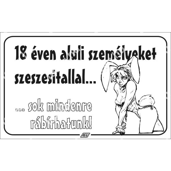 | 18 éven aluli személyeket szeszesitallal sok mindenre rábírhatunk! tábla 160x100 mm DEB007001PVC01600100 | PVC 1 mm | 160 mm | 100 mm | 1 mm | db | 625 Ft | 794 Ft |