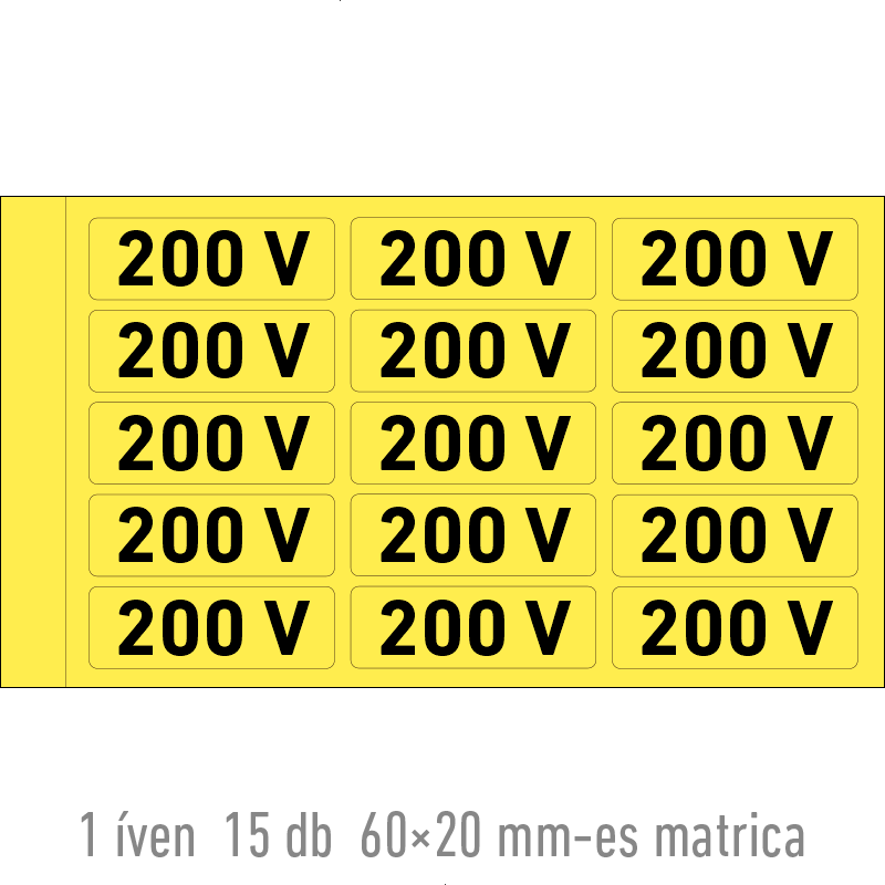 | 200 V matrica 60x20 mm ERV126001ONV00600020 | vinil öntapadó | 60 mm | 20 mm | 0.2 mm | ív | 275 Ft | 349 Ft |