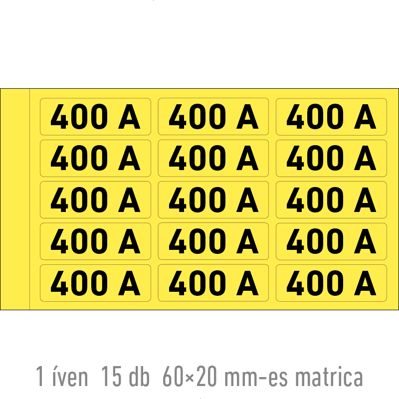 | 400 A matrica 60x20 mm ERV117001ONV00600020 | vinil öntapadó | 60 mm | 20 mm | 0.2 mm | ív | 275 Ft | 349 Ft |