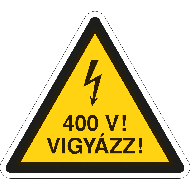 A “400 V! Vigyázz!” a nagyfeszültségű áram veszélyére figyelmeztető piktogram+felirat.
