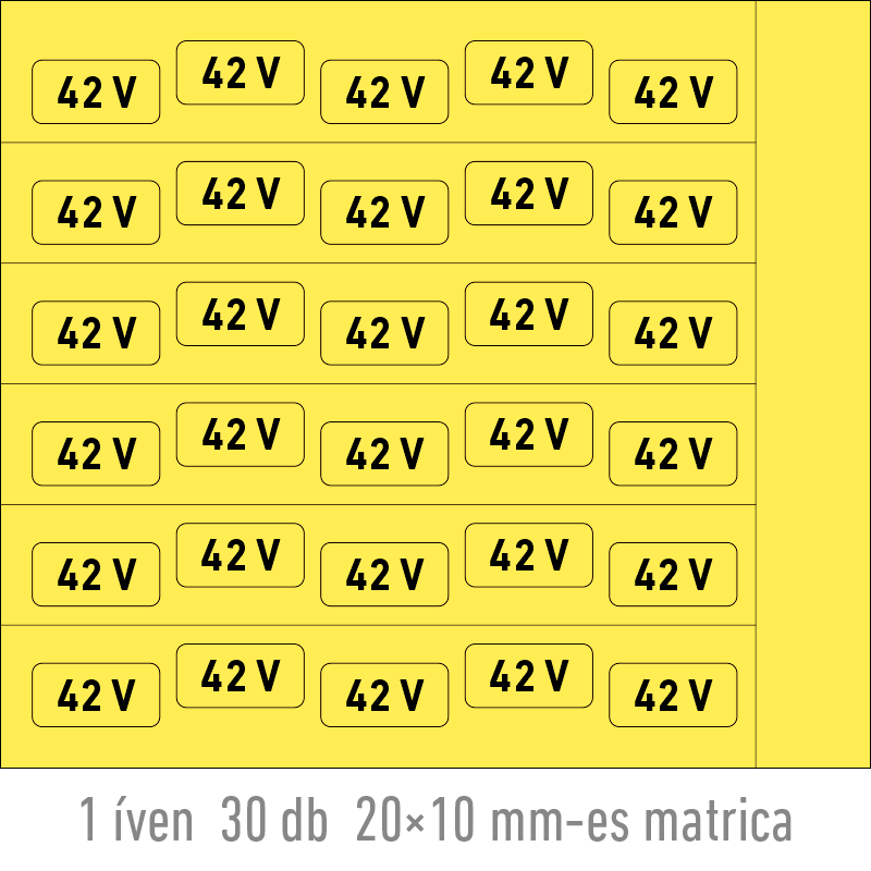 42 V matrica 20x10 mm ERV124001ONV00200010 vinil öntapadó 20 mm 10 mm 0.2 mm ív 330 Ft 419 Ft