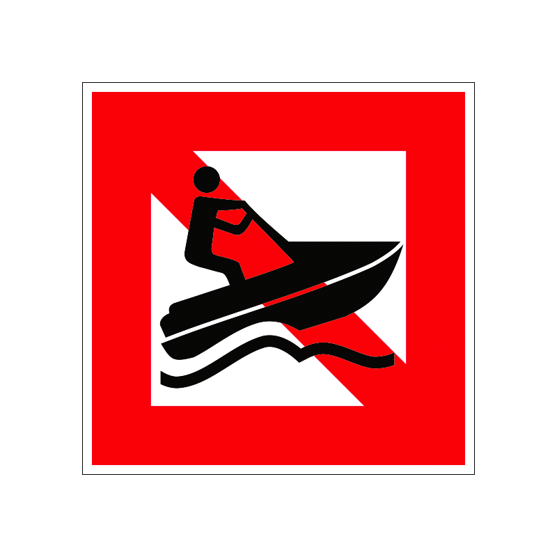 A.20 Motoros vízi sporteszközzel közlekedni tilos! hajózási tábla