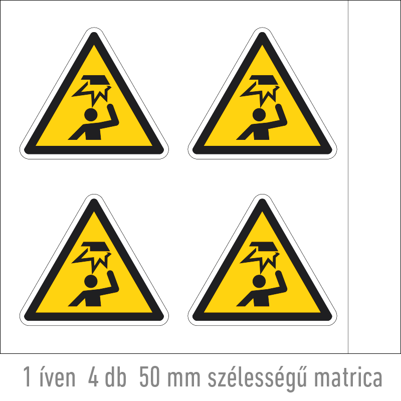 | A fej sérülésének veszélye matrica (ISO 7010-W020 piktogram) 50 mm VET108000ONV00500000 | vinil öntapadó | 50 mm | 43 mm | 0.2 mm | ív | 330 Ft | 419 Ft |