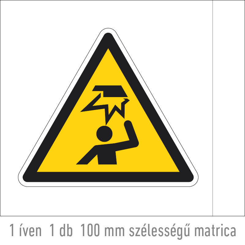 | A fej sérülésének veszélye matrica (ISO 7010-W020 piktogram) 100 mm VET108000ONV01000000 | vinil öntapadó | 100 mm | 86 mm | 0.2 mm | db | 225 Ft | 286 Ft |