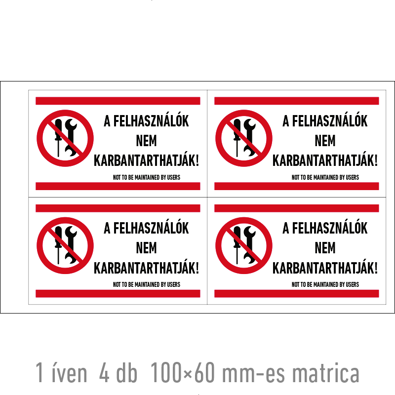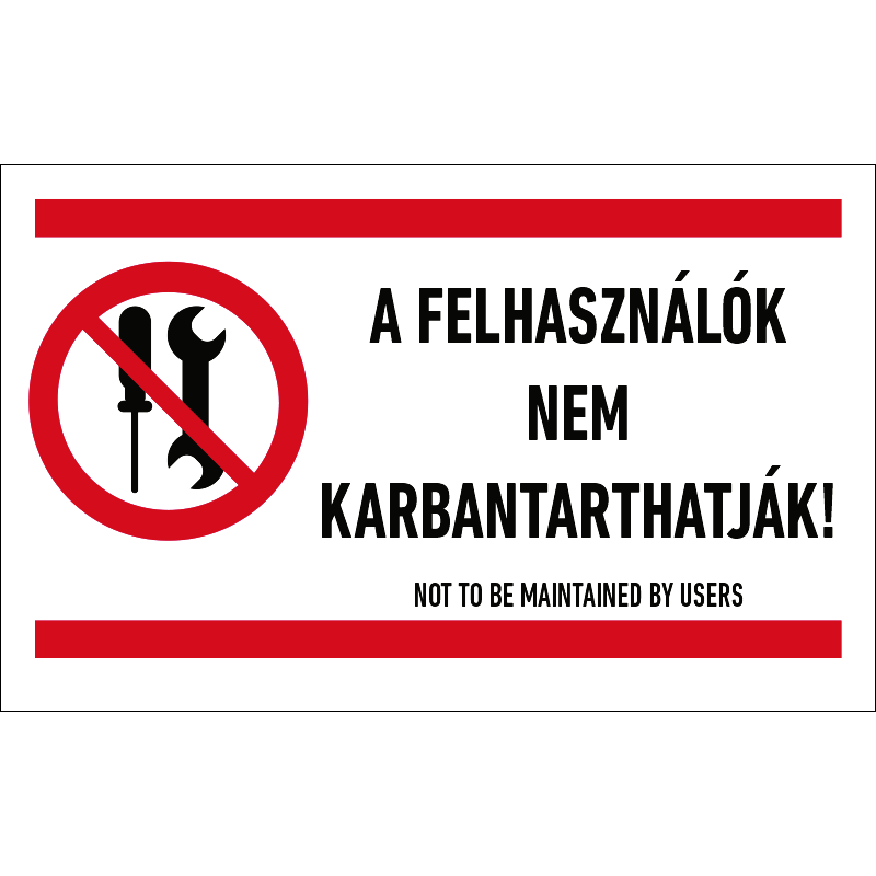 “A felhasználók nem karbantarthatják!” a karbantartást az illetékteleneknek tiltó piktogram+felirat.