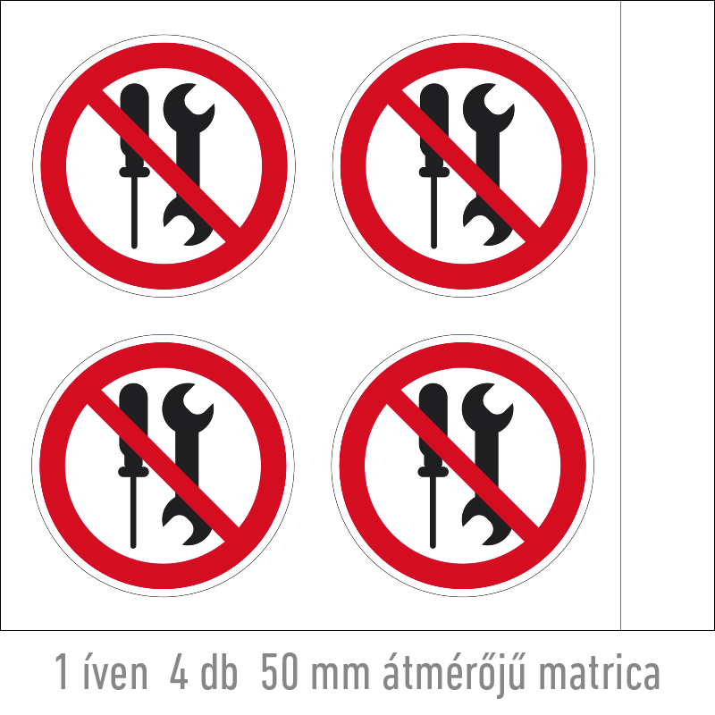 | A felhasználók nem karbantarthatják! matrica (ISO 7010-P069 piktogram) 50 mm TIT080000ONV00500000 | vinil öntapadó | 50 mm | 50 mm | 0.2 mm | ív | 330 Ft | 419 Ft |