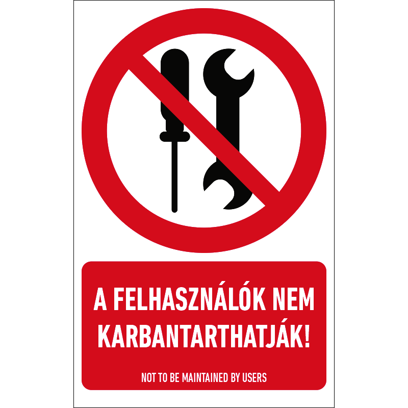 “A felhasználók nem karbantarthatják!” a karbantartást az illetékteleneknek tiltó piktogram+felirat.
