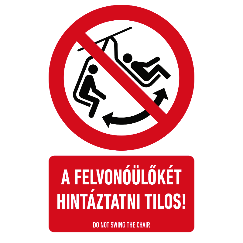 “A felvonóülőkét hintáztatni tilos!” a felvonóülőke hintáztatását tiltó piktogram+felirat.