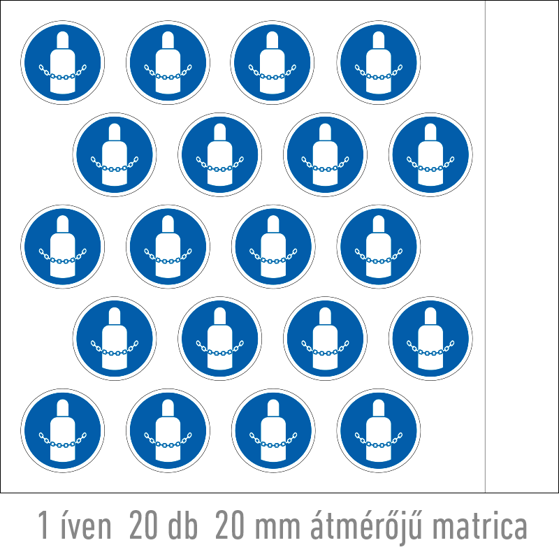 | A gázpalackok rögzítendők! matrica (ISO 7010-M046 piktogram) 20 mm BIT033000ONV00200000 | vinil öntapadó | 20 mm | 20 mm | 0.2 mm | ív | 330 Ft | 419 Ft |