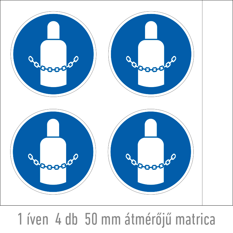 | A gázpalackok rögzítendők! matrica (ISO 7010-M046 piktogram) 50 mm BIT033000ONV00500000 | vinil öntapadó | 50 mm | 50 mm | 0.2 mm | ív | 330 Ft | 419 Ft |