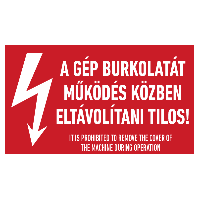 “A gép burkolatát működés közben eltávolítani tilos!” a berendezés burkolatának eltávolítását tiltja működés közben.