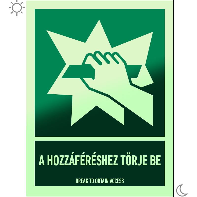 | A hozzáféréshez törje be! utánvilágító matrica (ISO 7010-E008 piktogram + felirat) 150x200 mm MET060002UTV01500200 | utánvilágító öntapadó | 150 mm | 200 mm | 0.5 mm | db | 1450 Ft | 1842 Ft |