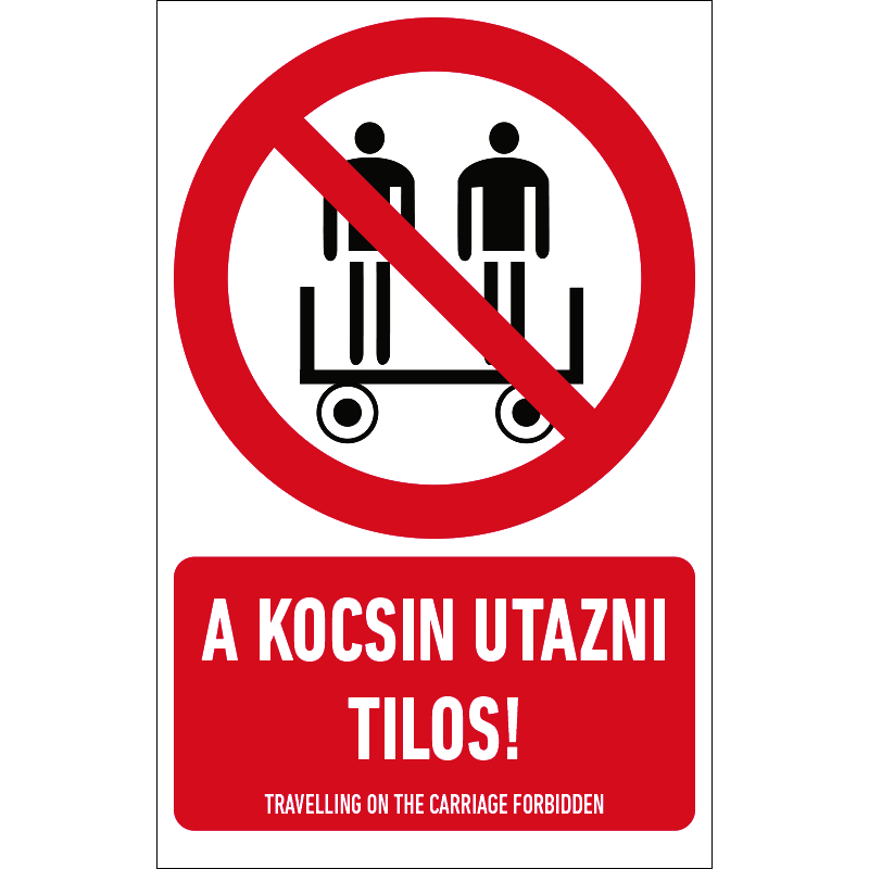 “A kocsin utazni tilos!” a szállítóeszközön a személyszállítást tiltó piktogram+felirat.