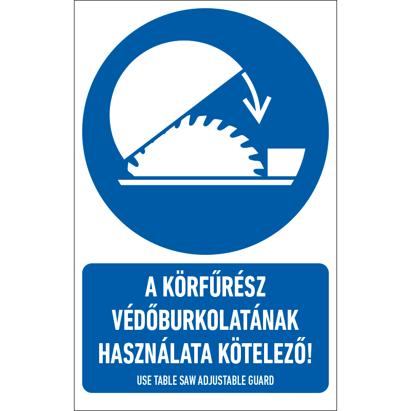 | A körfűrész védőburkolatának használata kötelező! tábla (ISO 7010-M031 piktogram + felirat) 160x250 mm BIT083001PET01600250 | PET-G 0,7 mm+kétoldalas ragasztó | 160 mm | 250 mm | 1 mm | db | 1100 Ft | 1397 Ft |