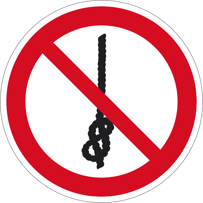 A kötélre csomót kötni tilos! matrica (ISO 7010-P030 piktogram)