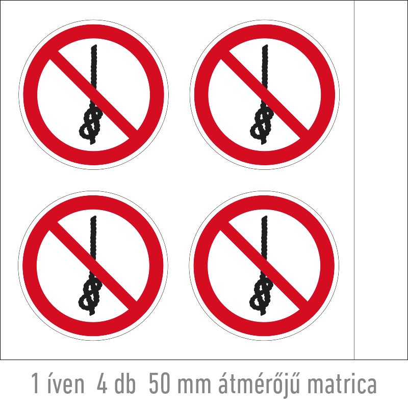 A kötélre csomót kötni tilos! matrica (ISO 7010-P030 piktogram) 50 mm TIT065000ONV00500000 vinil öntapadó 50 mm 50 mm 0.2 mm ív 330 Ft 419 Ft