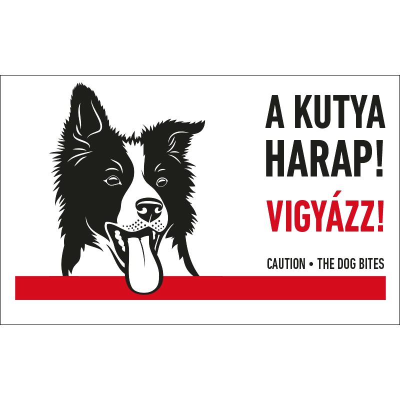 “A kutya harap! Vigyázz!” a kutyaharapás veszélyére figyelmeztető fotó+felirat.