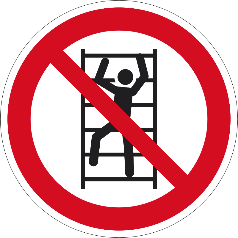 “A polcra felmászni tilos!” a polcra mászást tiltó piktogram.