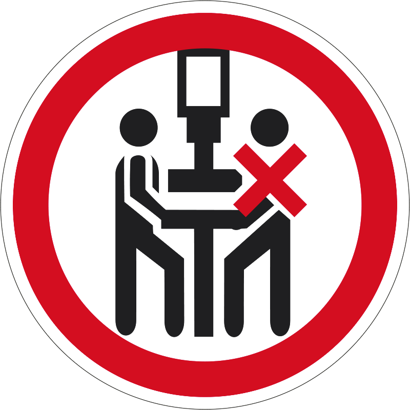 “A présgépet csak egy személy kezelheti!” a présgépet kezelő személyen kívül más közreműködését tiltó piktogram.