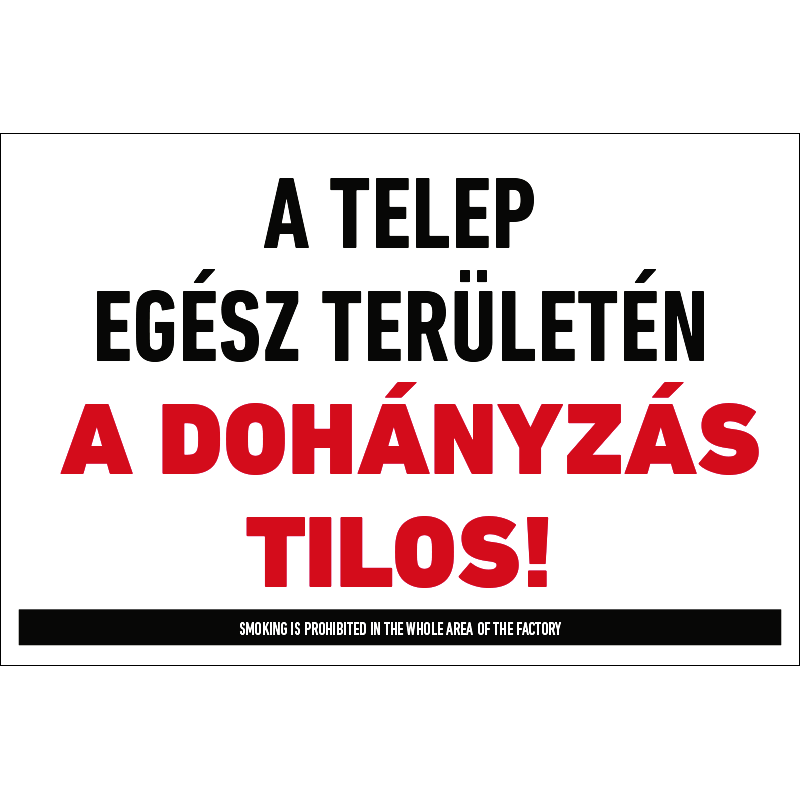 “A telep egész területén a dohányzás tilos!” a tűzveszély miatt a dohányzást a telep egész területén tiltó felirat.