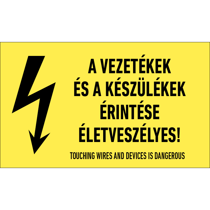 “A vezetékek és a készülékek érintése életveszélyes!” az elektromos vezetékek és készülékek érintésének veszélyére figyelmeztet.