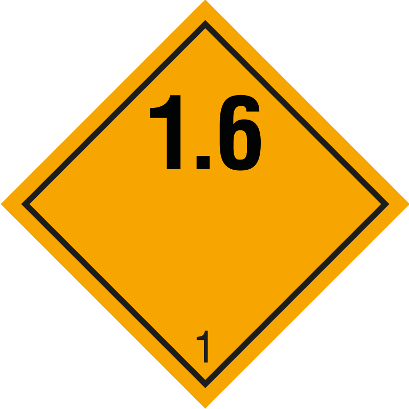 ADR/RID/ADN bárca, 1 osztály veszélye, 1.6 alosztály, robbanóanyagok és -tárgyak matrica / tábla