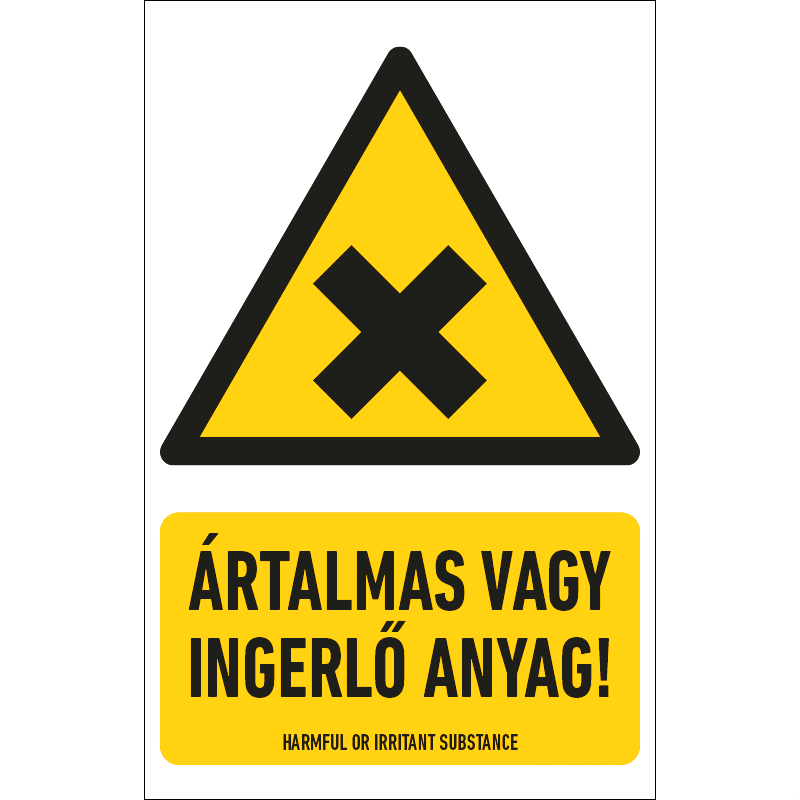 Az “Ártalmas vagy ingerlő anyag!” az élő szervezetre ártalmas vagy ingerlő hatású toxikus anyagra figyelmeztető piktogram+felirat.