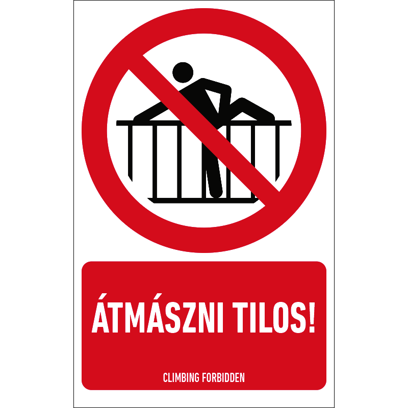 Az “Átmászni tilos!” az átmászást tiltó piktogram+felirat.