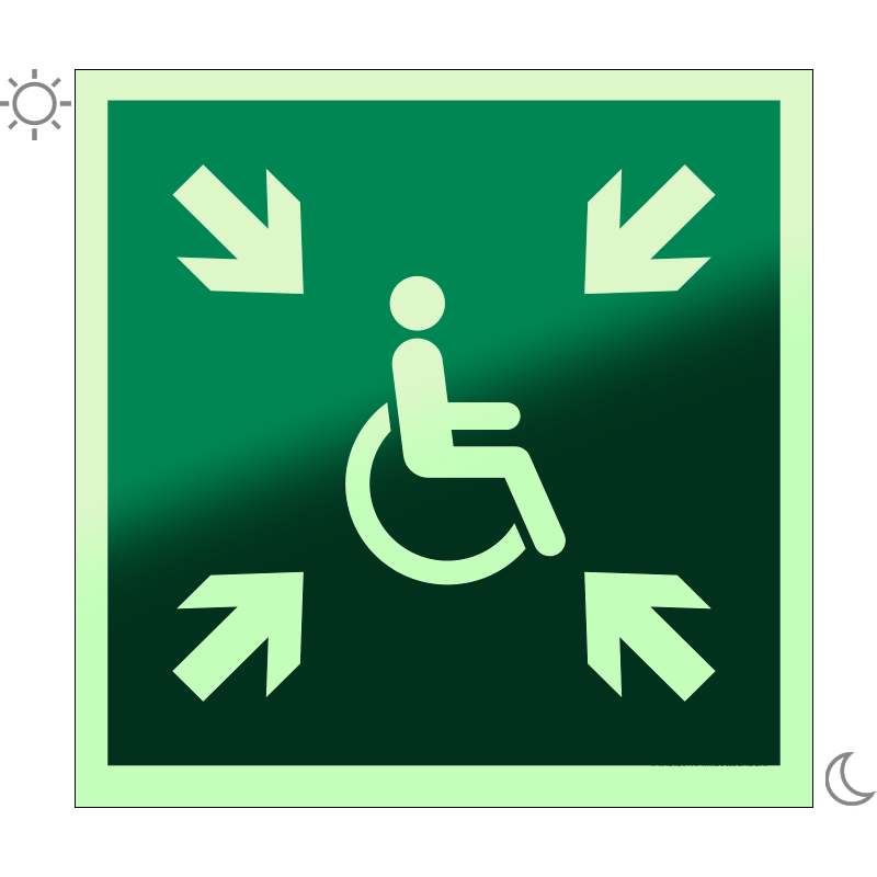 | Átmeneti védett tér utánvilágító tábla (ISO 7010-E024 piktogram) 200x200 mm MET049002UTM02000200 | utánvilágító PVC | 200 mm | 200 mm | 1.1 mm | db | 1925 Ft | 2445 Ft |