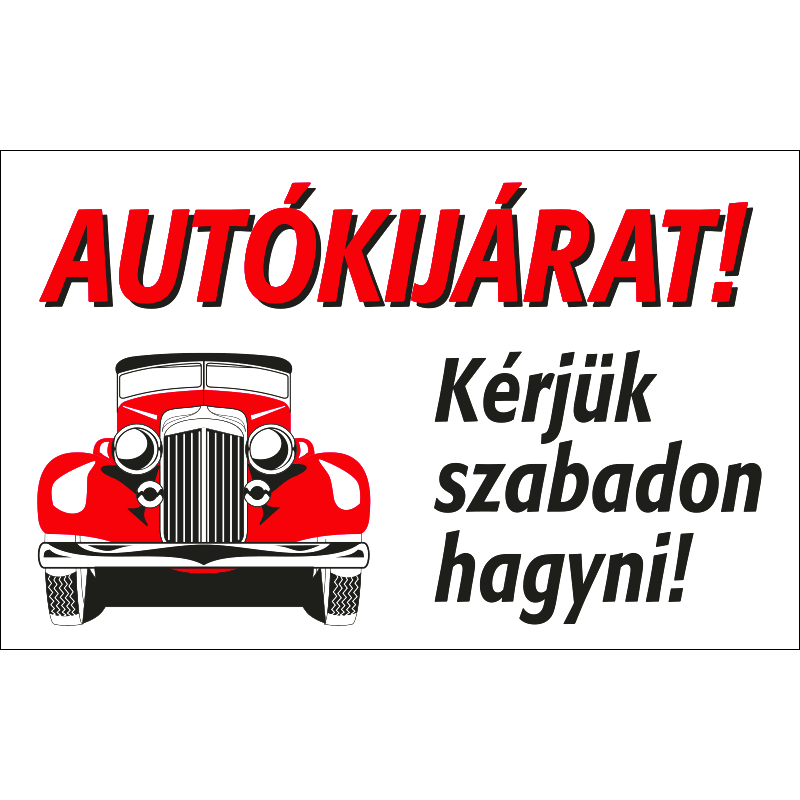 Az “Autókijárat! Kérjük szabadon hagyni!” a gépjárművek közlekedésésére és a közlekedőút szabadon hagyására figyelmeztető felirat.