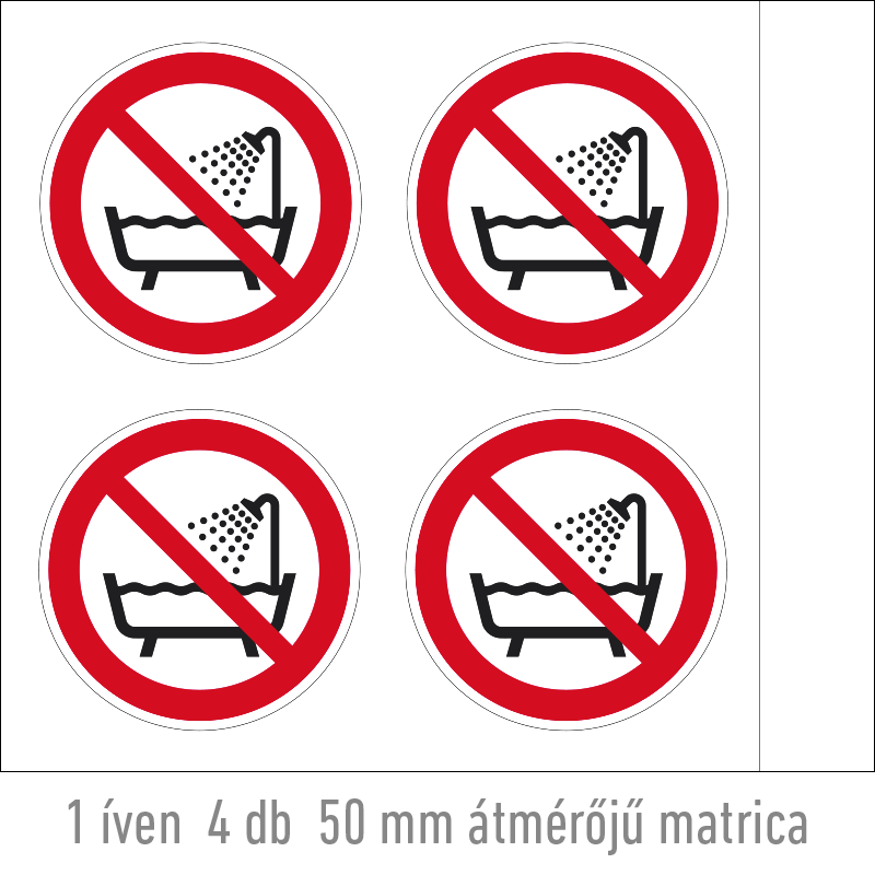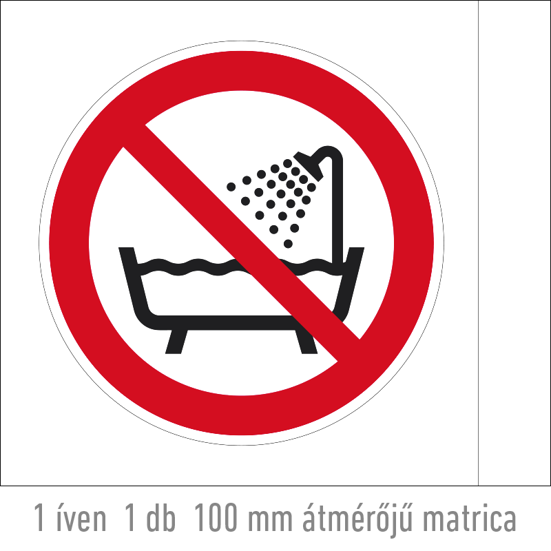 | Az eszköz használata tilos fürdőkádban, zuhany alatt vagy víztartályban! matrica (ISO 7010-P026 piktogram) 50 mm TIT064000ONV00500000 | vinil öntapadó | 50 mm | 50 mm | 0.2 mm | ív | 330 Ft | 419 Ft |