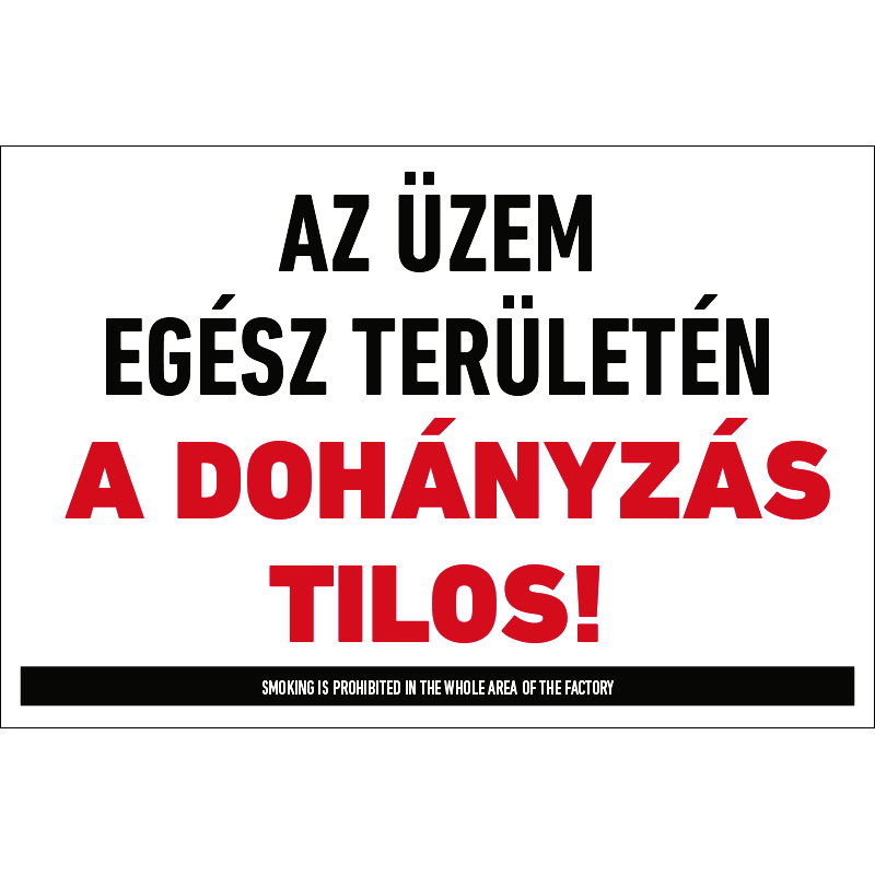 “Az üzem egész területén a dohányzás tilos!” a tűzveszély miatt a dohányzást az üzem egész területén tiltó felirat.