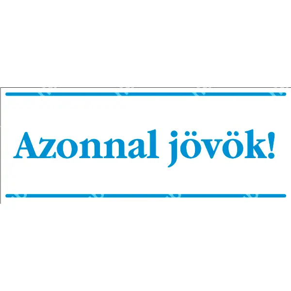 | Azonnal jövök matrica (kék/fehér, magyar nyelvű) 250x100 mm UZT002002ONV02500100 | vinil öntapadó | 250 mm | 100 mm | 0.2 mm | db | 385 Ft | 489 Ft |