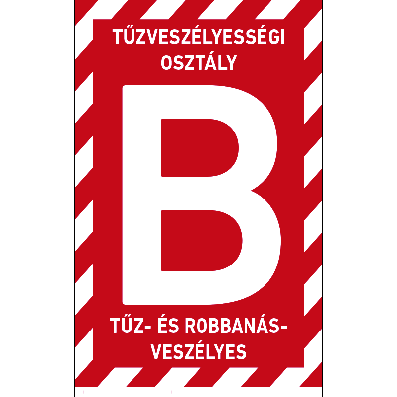 A “B tűzveszélyességi osztályba sorolt helyiség” a tűz- és robbanásveszélyes anyagok tárolására használt helyiséget jelölő felirat.