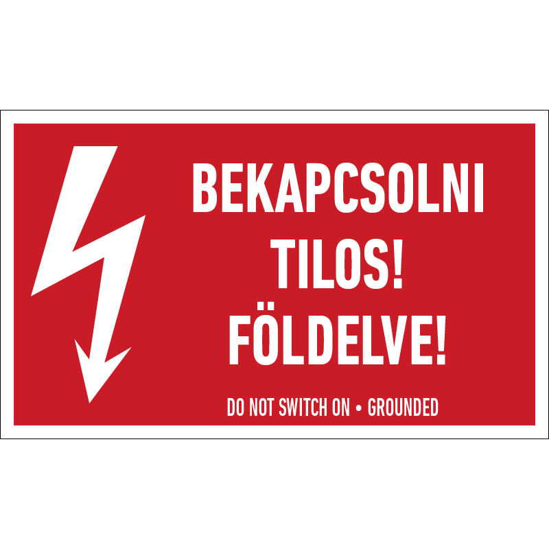 A “Bekapcsolni tilos! Földelve!” a földelt elektromos berendezés bekapcsolásának tilalmára figyelmeztet.