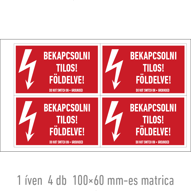 | Bekapcsolni tilos! Földelve! matrica 100x60 mm ERV056001ONV01000060 | vinil öntapadó | 100 mm | 60 mm | 0.2 mm | ív | 275 Ft | 349 Ft |
