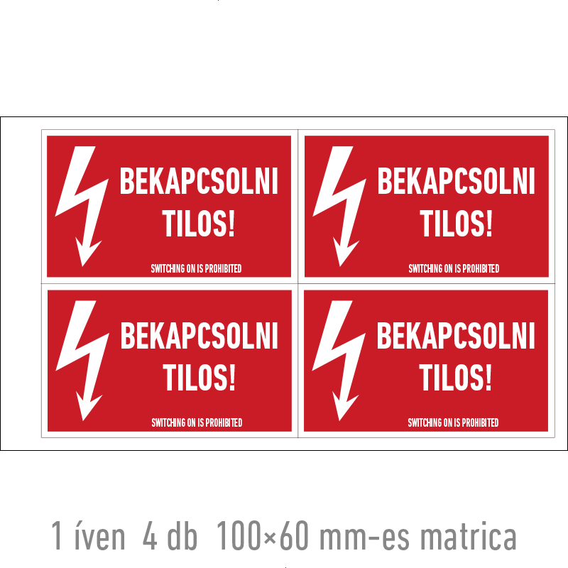 Bekapcsolni tilos! matrica 100x60 mm ERV019001ONV01000060 vinil öntapadó 100 mm 60 mm 0.2 mm ív 275 Ft 349 Ft