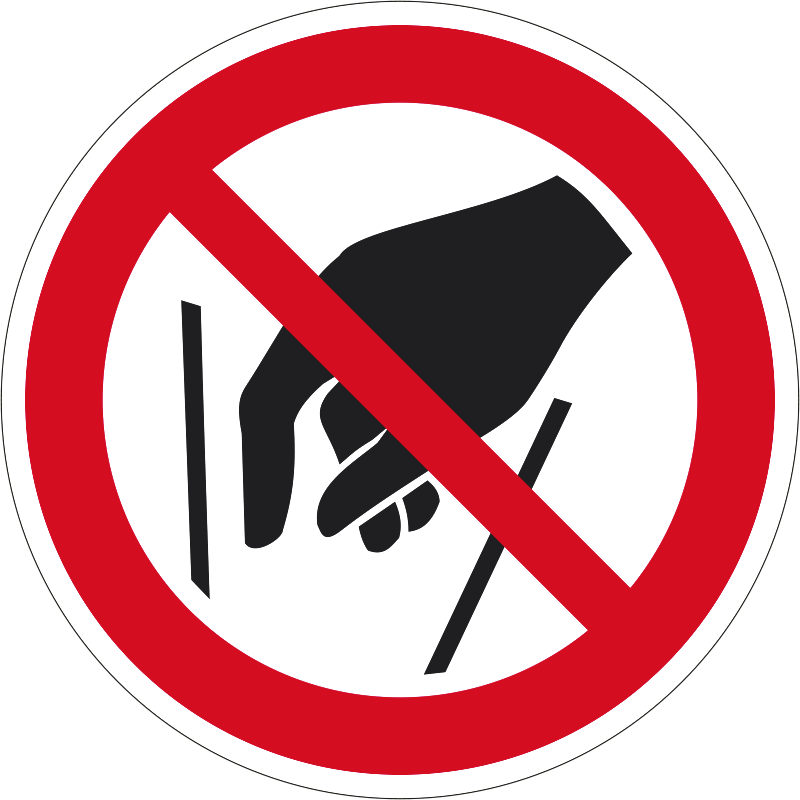 A “Benyúlni tilos!” a garatba, nyitott géprészbe nyúlást tiltó piktogram.