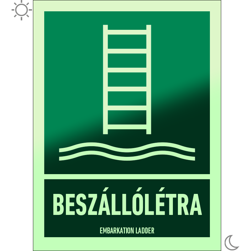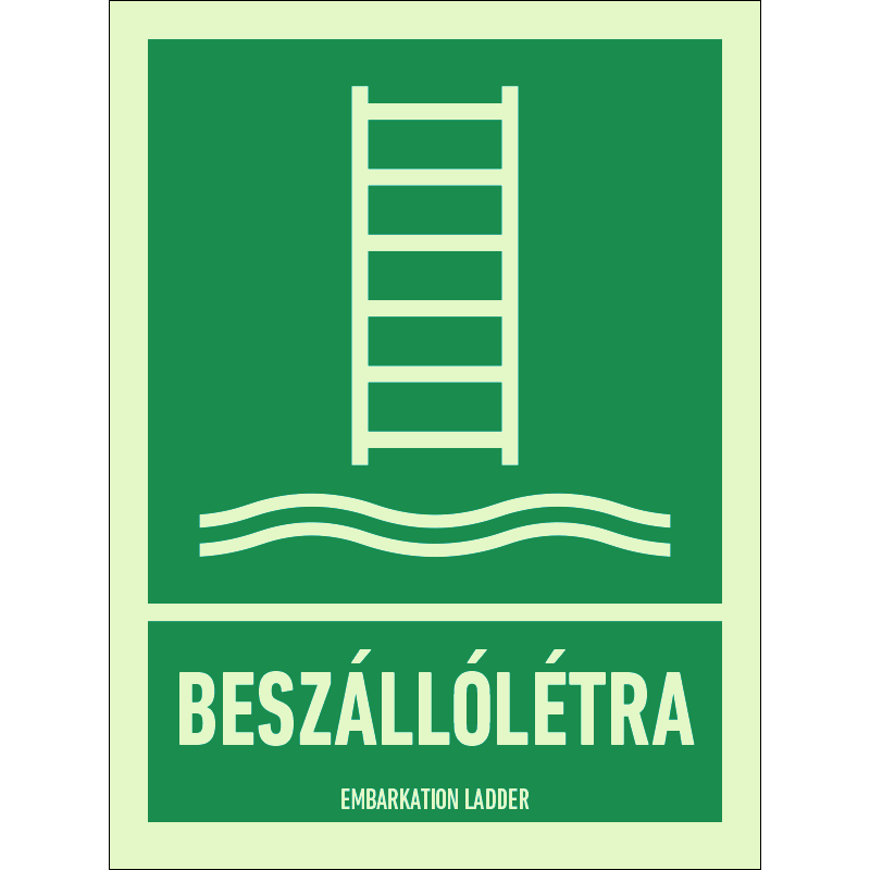 A “Beszállólétra” a hajón található beszállólétra helyét jelző zöld alapon fehér piktogram.