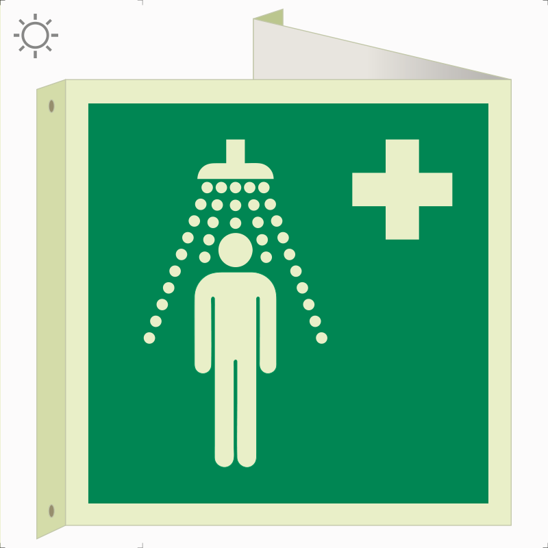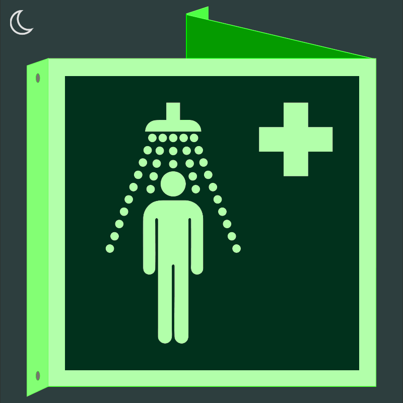 A “Biztonsági zuhany” a biztonsági zuhany helyét jelző zöld alapon fehér piktogram.