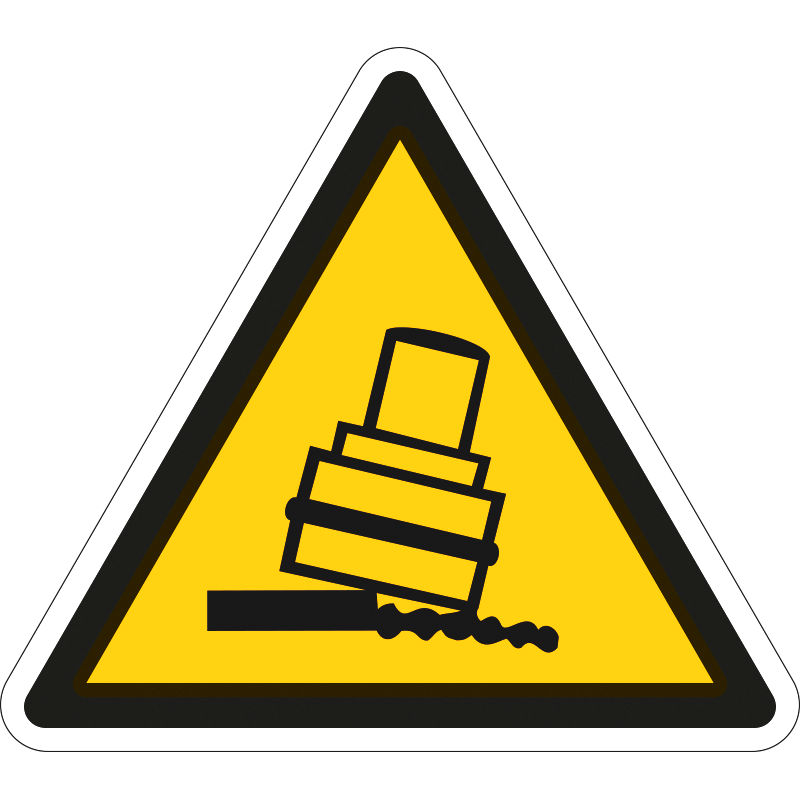 A “Borulásveszély!” a lejtős felületen a borulás veszélyére figyelmeztető piktogram.