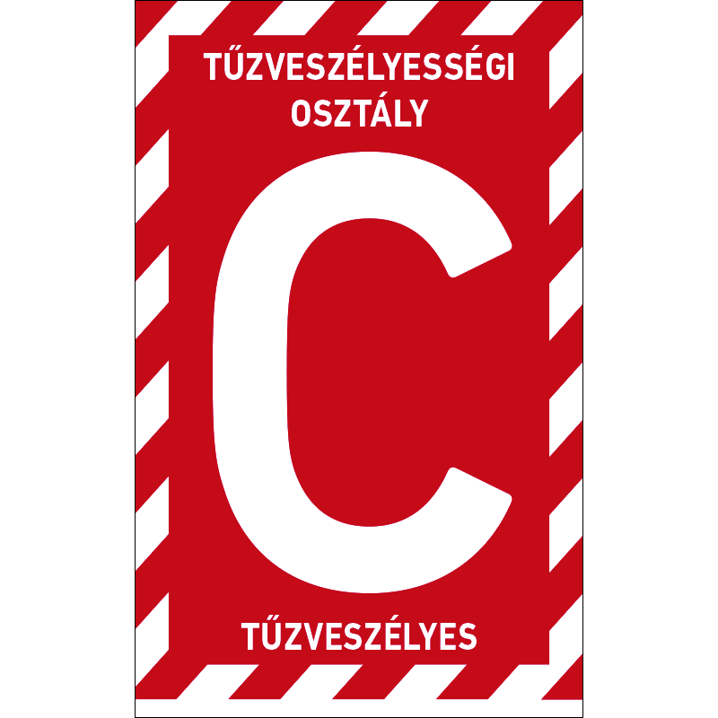 A “C tűzveszélyességi osztályba sorolt helyiség” a tűzveszélyes anyagok tárolására használt helyiséget jelölő felirat.