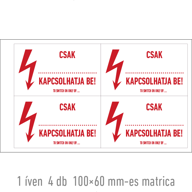 | Csak ... kapcsolhatja be! matrica 100x60 mm ERV037001ONV01000060 | vinil öntapadó | 100 mm | 60 mm | 0.2 mm | ív | 275 Ft | 349 Ft |
