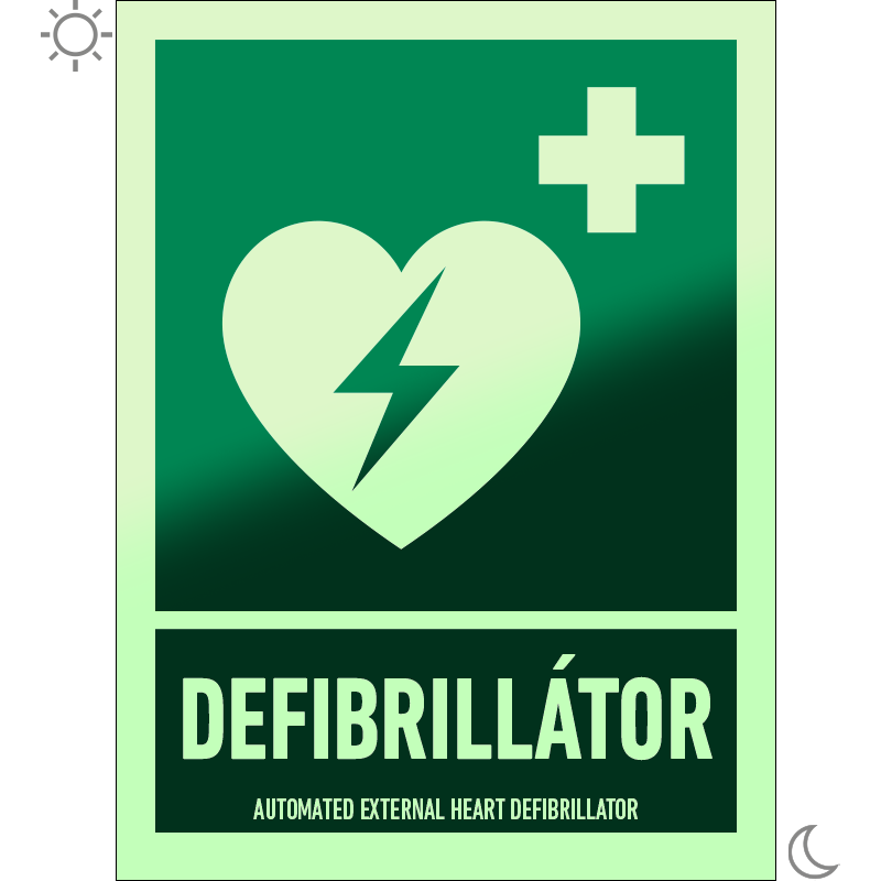 Defibrillátor utánvilágító matrica (ISO 7010-E010 piktogram + felirat) 150x200 mm MET059002UTV01500200 utánvilágító öntapadó 150 mm 200 mm 0.5 mm db 1450 Ft 1842 Ft