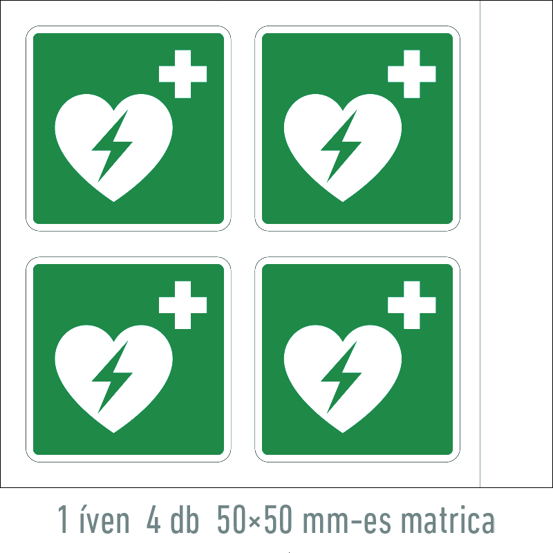 | Defibrillátor matrica (ISO 7010-E010 piktogram) 50x50 mm MET059001ONV00500050 | vinil öntapadó | 50 mm | 50 mm | 0.2 mm | ív | 330 Ft | 419 Ft |
