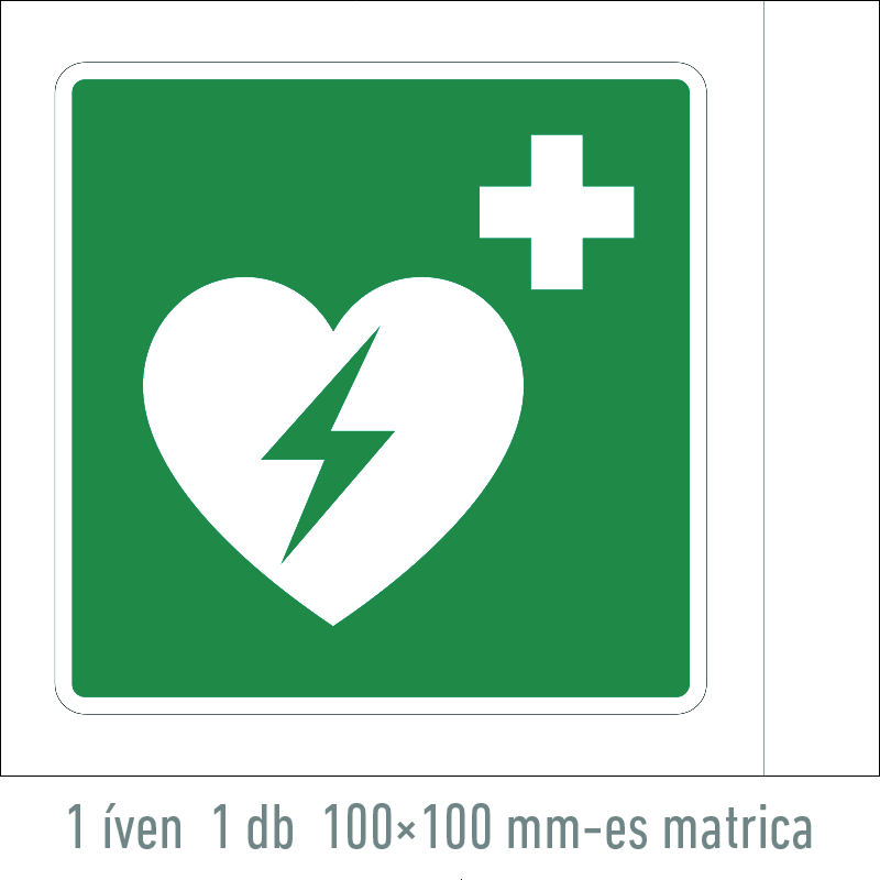 | Defibrillátor matrica (ISO 7010-E010 piktogram) 100x100 mm MET059001ONV01000100 | vinil öntapadó | 100 mm | 100 mm | 0.2 mm | db | 225 Ft | 286 Ft |