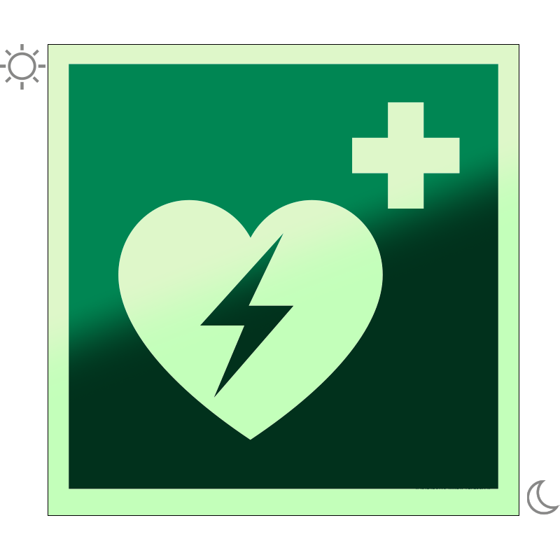 | Defibrillátor utánvilágító matrica (ISO 7010-E010 piktogram) 150x150 mm MET059001UTV01500150 | utánvilágító öntapadó | 150 mm | 150 mm | 0.5 mm | db | 1100 Ft | 1397 Ft |