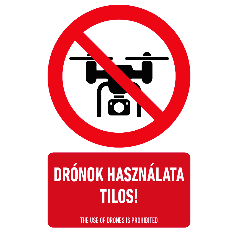 A “Drónok használata tilos!” a drónok használatát tiltó piktogram+felirat.