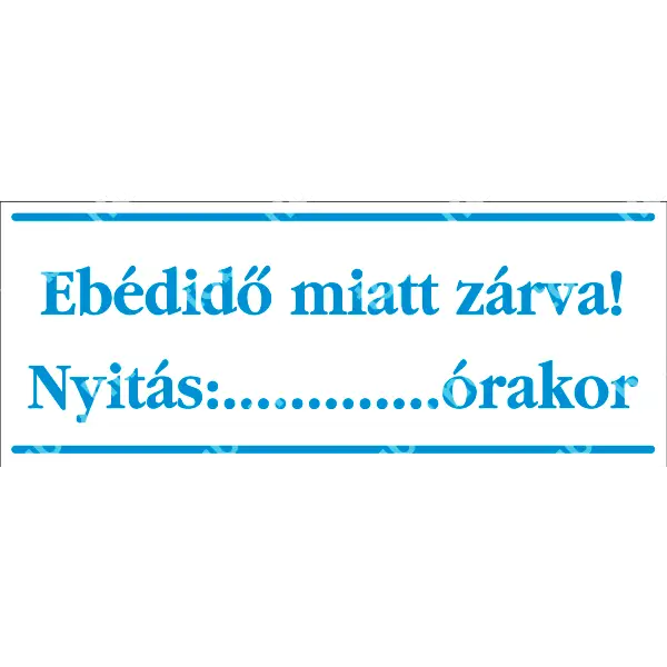| Ebédidő miatt zárva! tábla (kék/fehér, magyar nyelvű) 250x100 mm UZT004002PVC02500100 | PVC 1 mm | 250 mm | 100 mm | 1 mm | db | 550 Ft | 699 Ft |